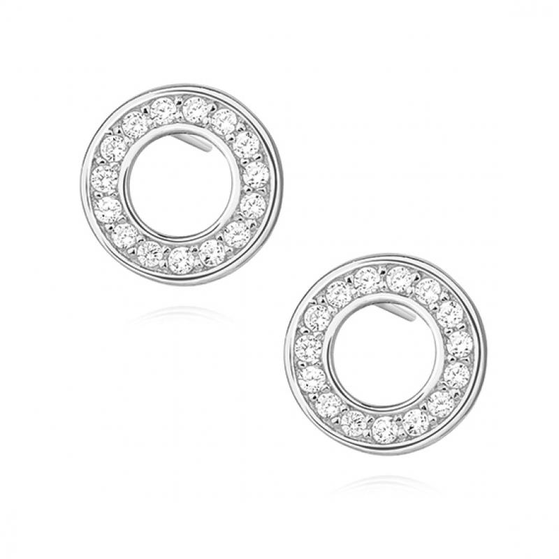 Nádherné stříbrné náušnice ve tvaru koleček - Small Circle, díky svým krystalkům jsou velmi elegantní. Náušnice jsou osázené čirými šatony. Samotné náušnice mají průměr 8,5 mm.