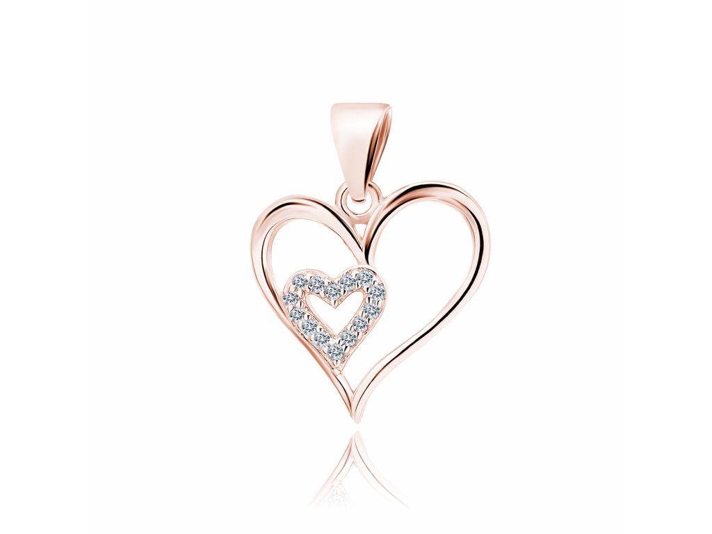 Dámský stříbrný přívěsek na krk - srdce Double Rose Gold